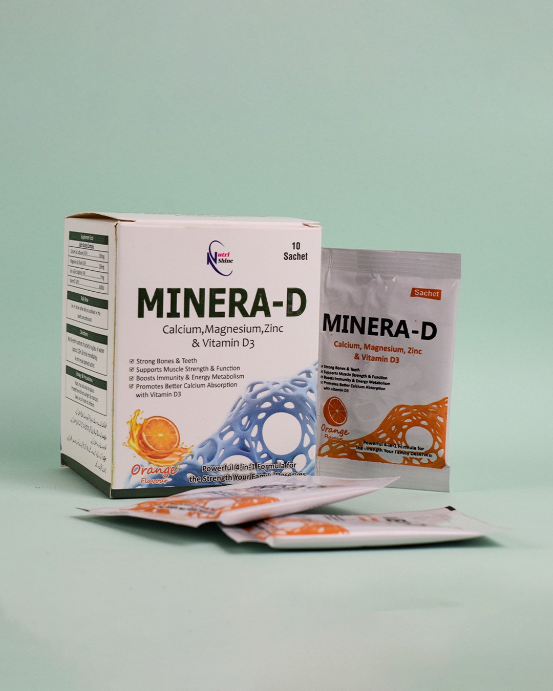 MINERA-D sachet is a synergistic combination to support strong bones and teeth, reduce the risk of osteoporosis, and enhance muscle and nerve function.